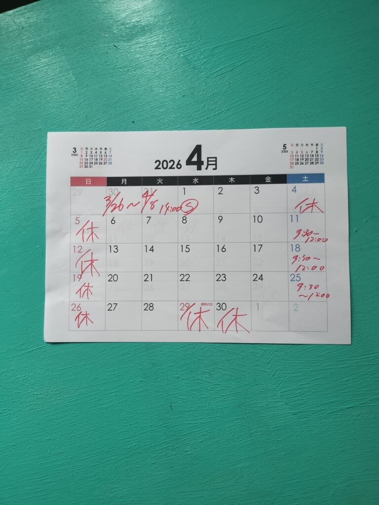 4月のお休みです。
